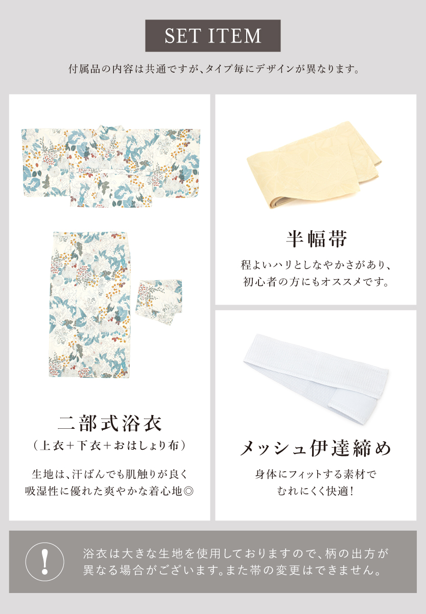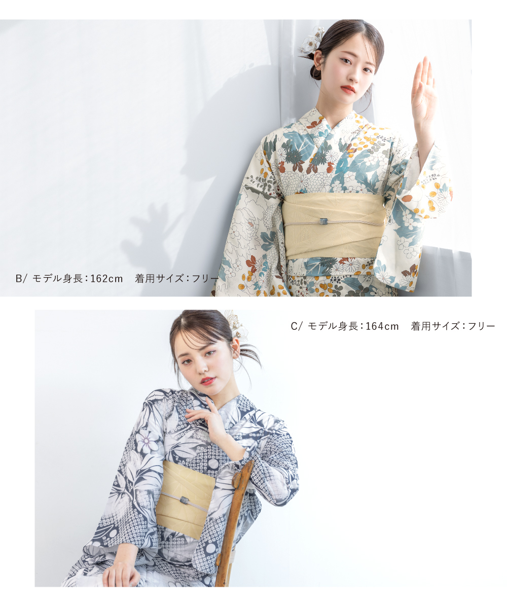 ※製造の都合上、浴衣とおはしょり布の色味が若干異なる場合があります。