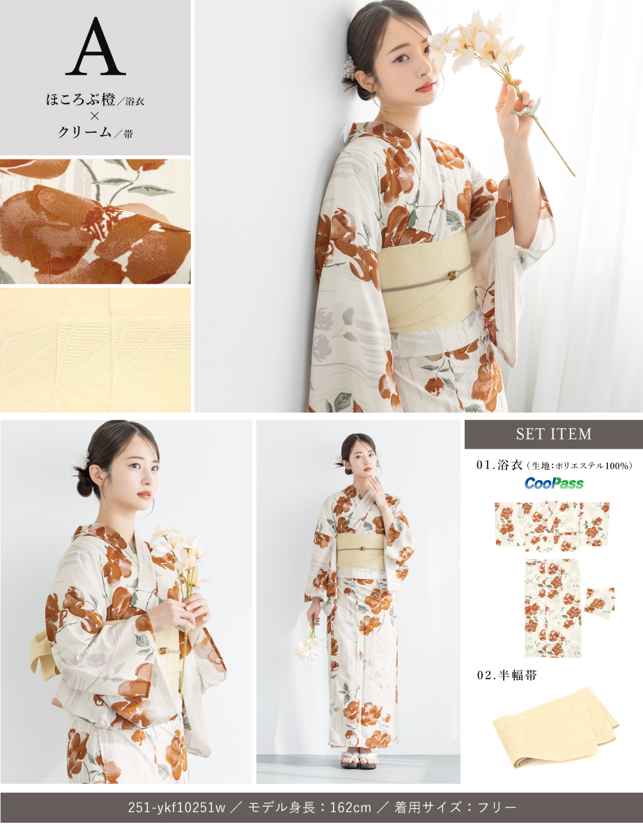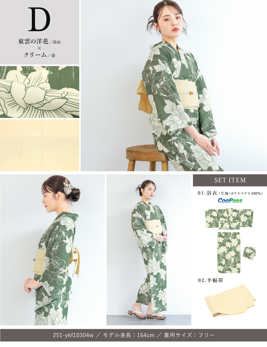 浴衣 セパレート浴衣 3点セット 二部式浴衣 レディース 夏 浴衣セット 半幅帯 2026 floro 簡単 悩まない 涼しい 浴衣セット 白 橙 紺 大人 おしゃれ フリー 送料無料