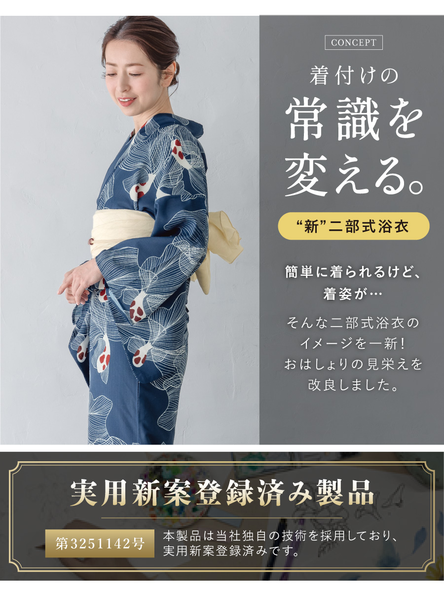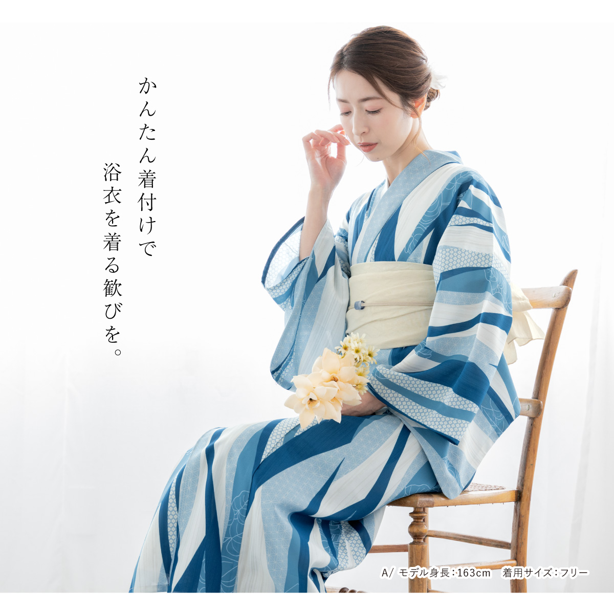 - 初心者でもプロの着姿!簡単に着れる新二部式浴衣 安心 着付け yukata ゆかた ユカタ 上品 大人 吸水速乾 人気 女性 綺麗 フェミニン 和装 30代 40代 50代 women 夏着物 レトロ 柄
