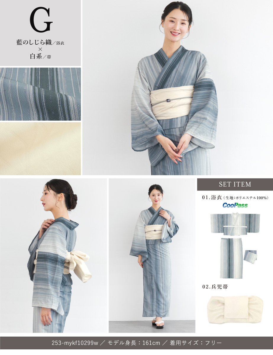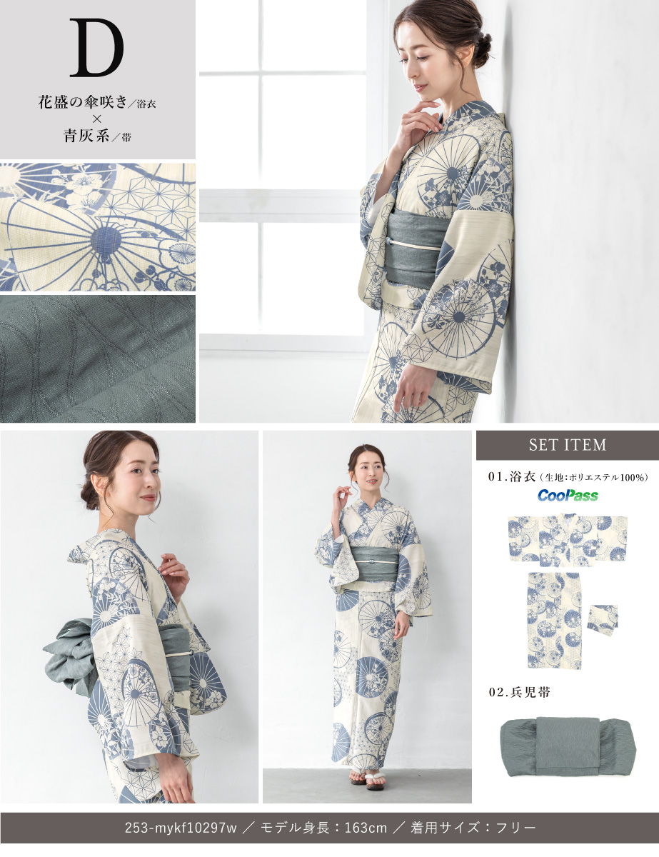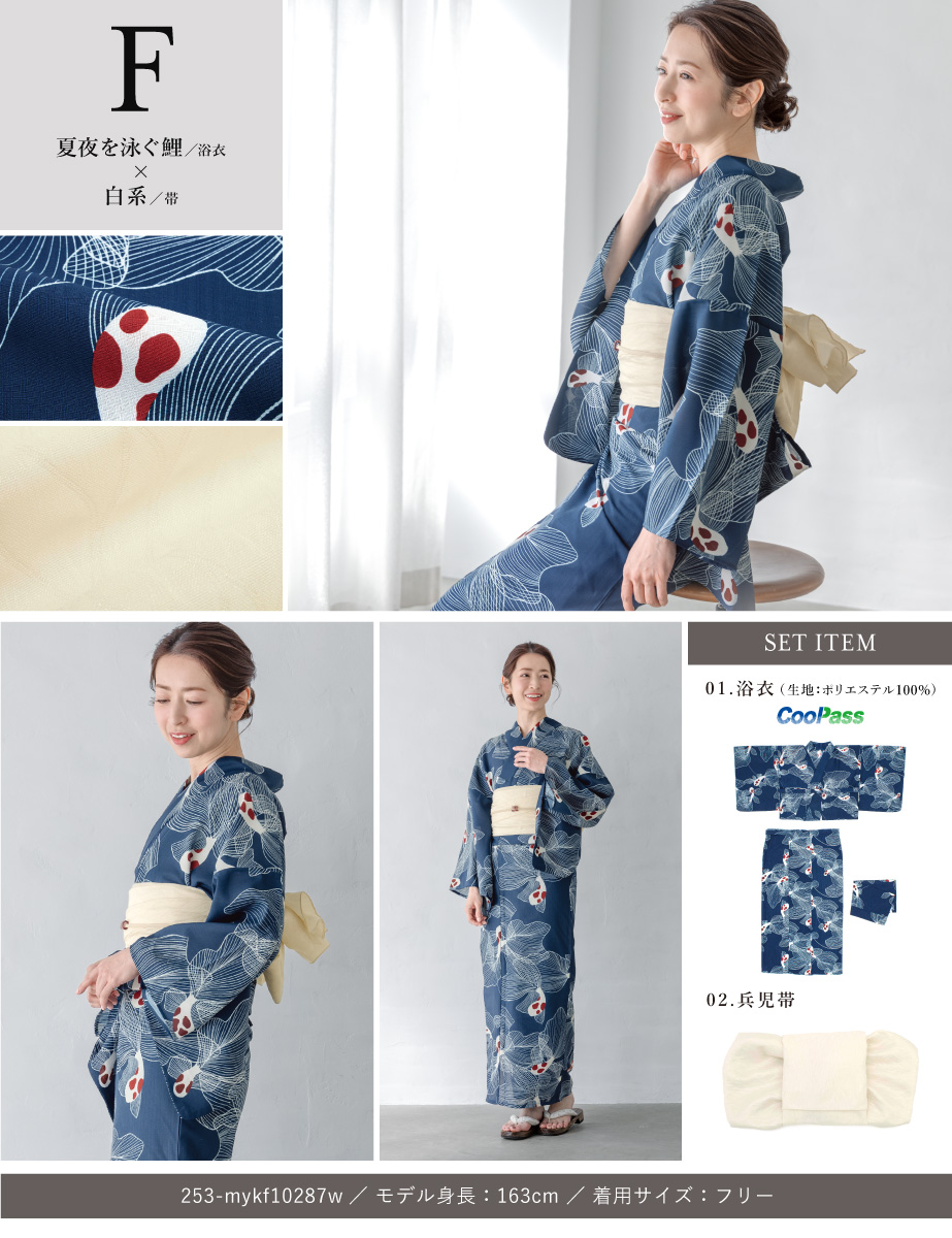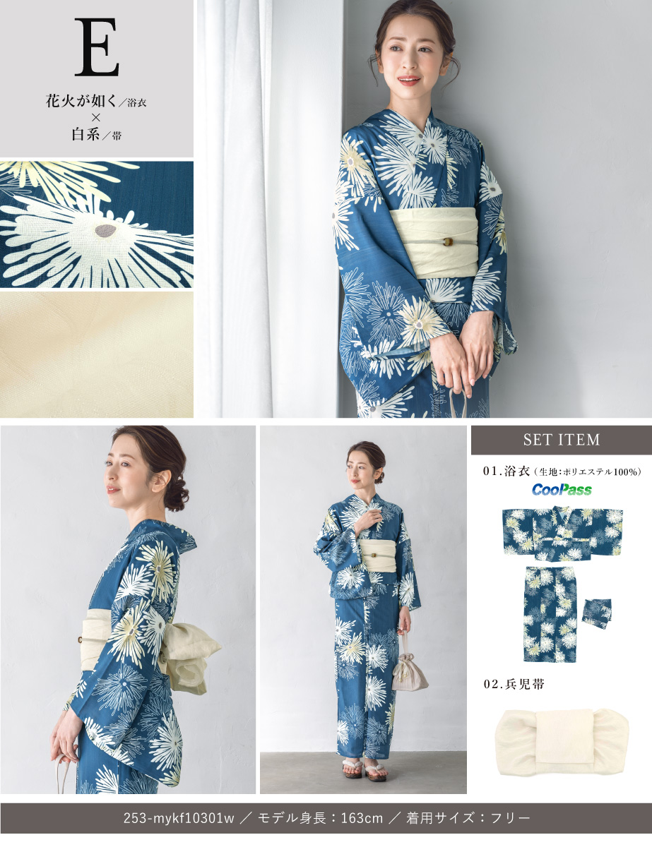 浴衣 セット レディース 二部式 セパレート 浴衣セット 兵児帯 2026 floro 簡単 悩まない 誰でも 涼しい コーディネート済み 青 白 紺 灰 30代 40代 50代 フリー 送料無料