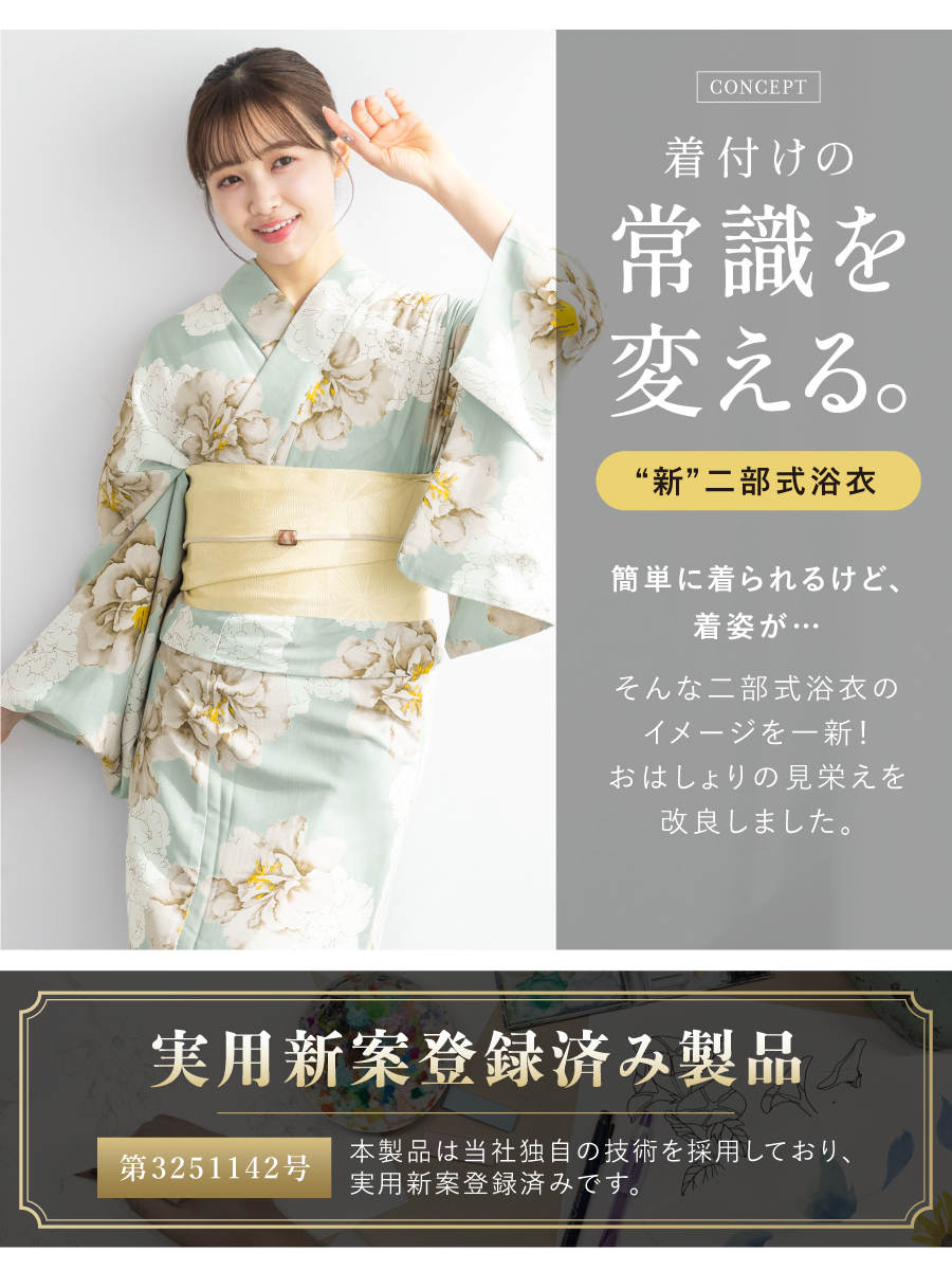 - 初心者でもプロの着姿!簡単に着れる新二部式浴衣 安心 着付け yukata ゆかた ユカタ 上品 大人 吸水速乾 人気 女性 綺麗 フェミニン 和装 10代 20代 30代 40代 women 夏着物 レトロ 柄