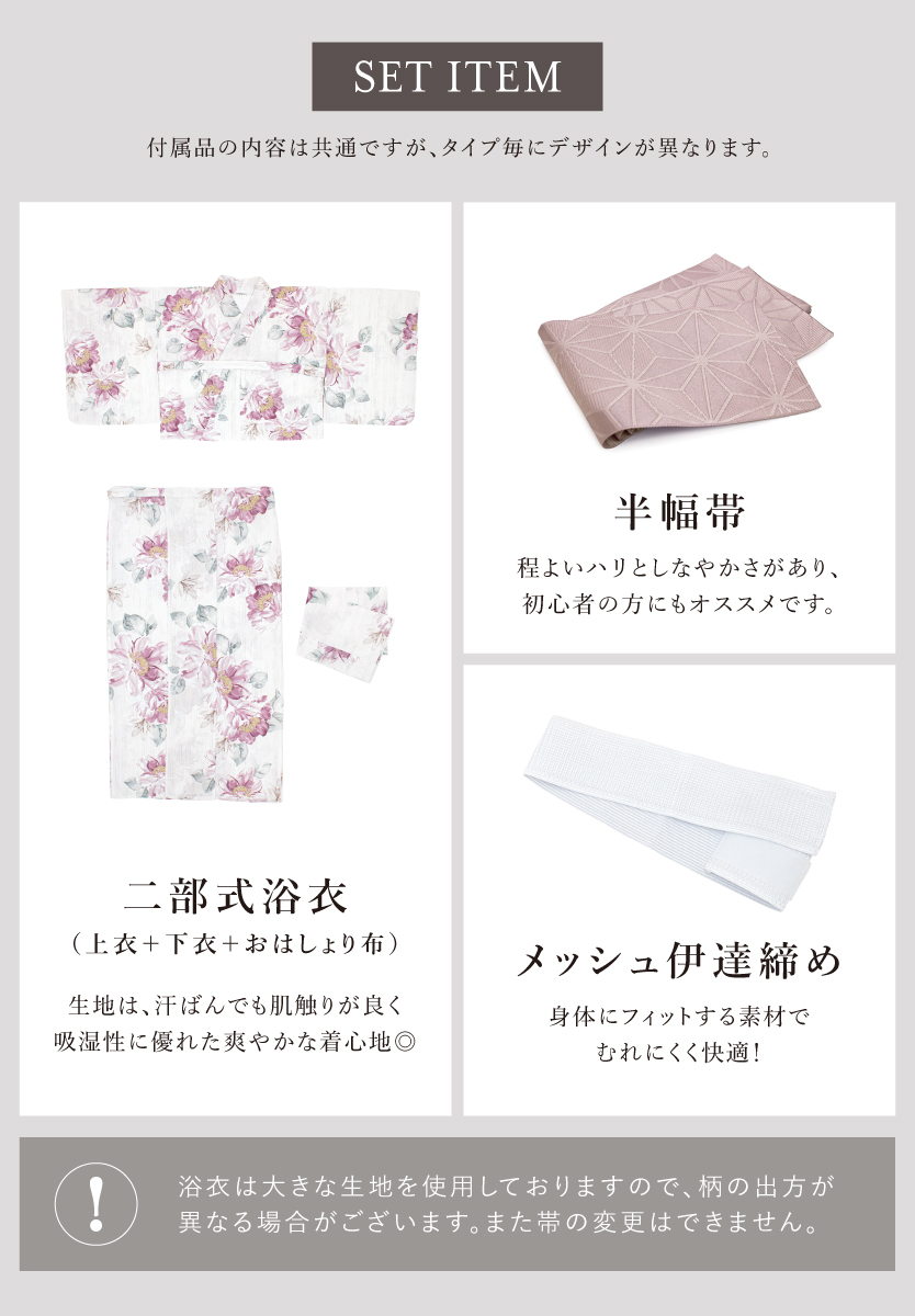 浴衣 セパレート浴衣 3点セット 二部式浴衣 レディース 夏 浴衣セット 半幅帯 2026 floro 簡単 悩まない 涼しい 浴衣セット 白 紫 茶 大人 おしゃれ フリー 送料無料