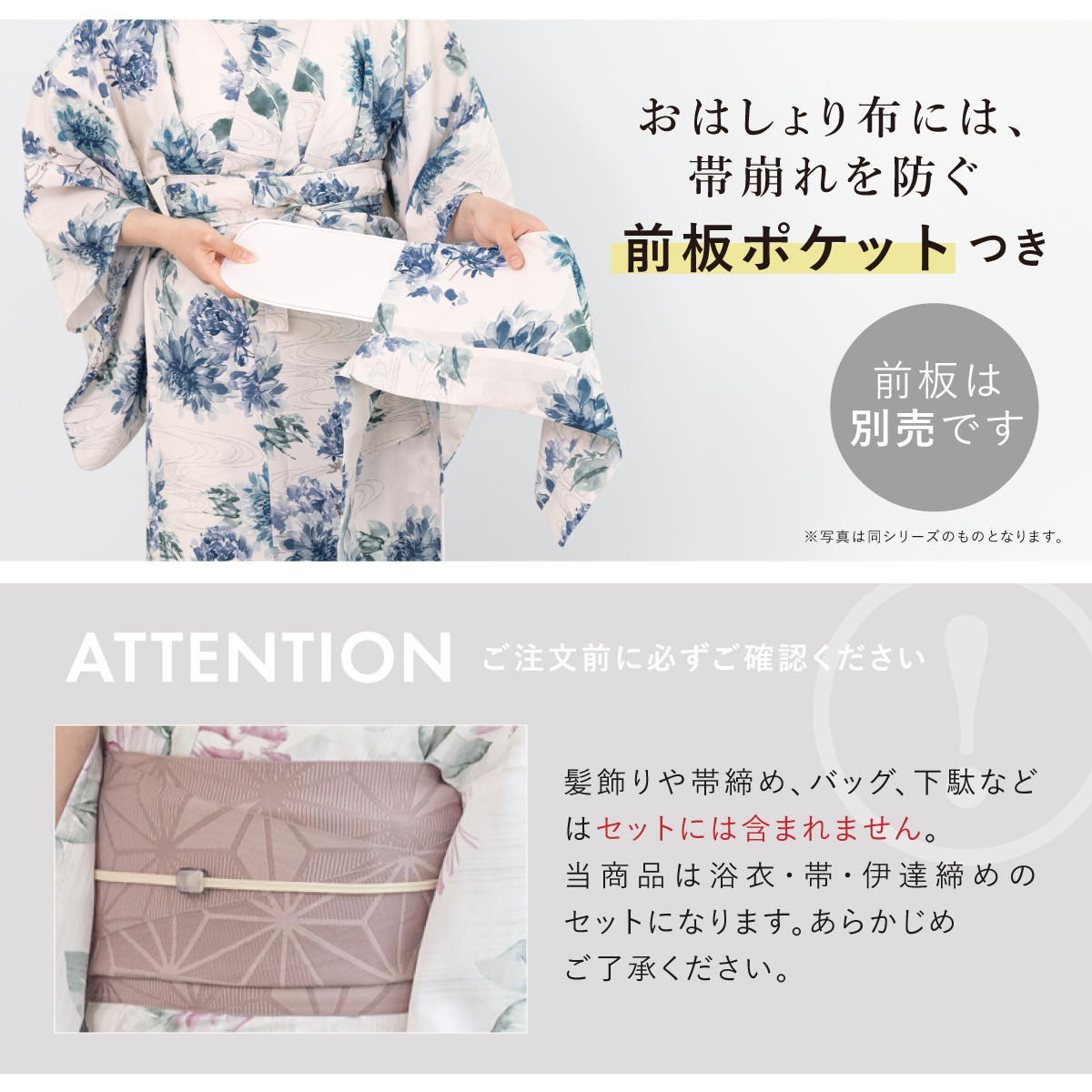 ※製造の都合上、浴衣とおはしょり布の色味が若干異なる場合があります。予めご了承ください。