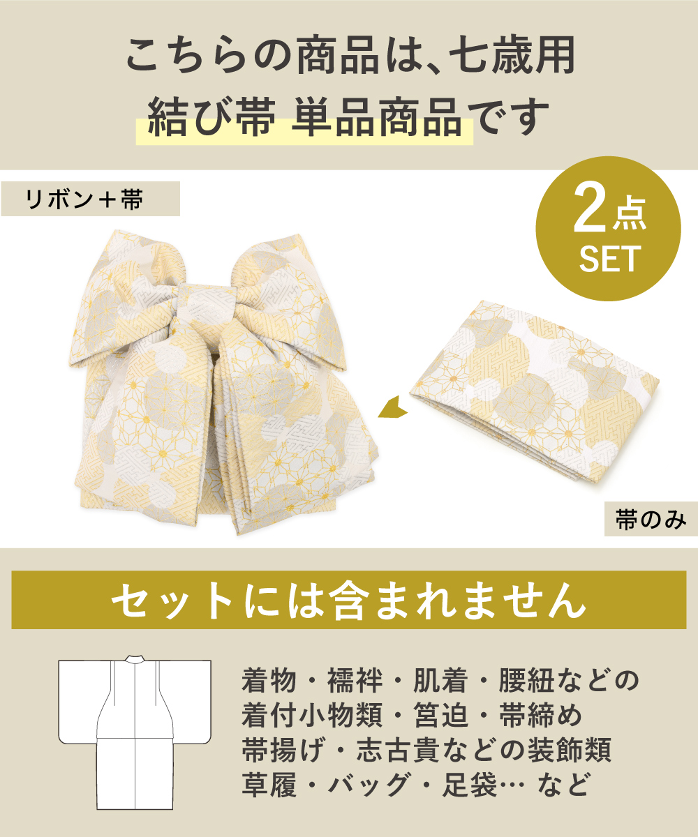- 初めてでも安心★簡単かわいい文庫結びの結び帯 七五三用 結び帯単品 祝い帯 付け帯 祝帯 女児 ガール キッズ 子供用 こども ジュニア 七歳 7才 七才 豪華 高級 お祝い 通年 着付け 安心